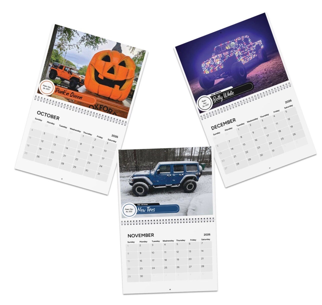Bring the rugged, off-road spirit of the Chattahoochee Crawlers straight to your home, garage, or workspace. This 12-month 2026 wall calendar features some of our club’s standout rigs — from mud-tested beasts to trail-ready daily drivers — captured in bold, dynamic photos that celebrate the heart of our Jeep community.